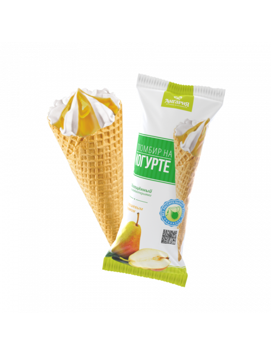 Сахарный рожок пломбир на йогурте с грушевым джемом.
