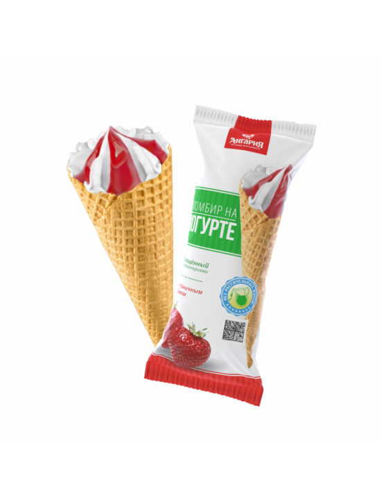 Сахарный рожок пломбир на йогурте с клубничным джемом.