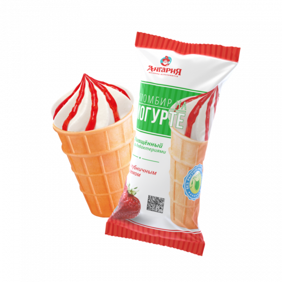 Мороженое Пломбир на йогурте с клубничным джемом