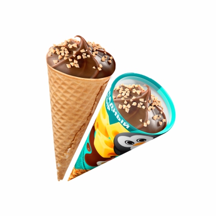 Состав: молоко коровье пастеризованное, молоко цельное сгущенное с сахаром (молоко цельное, обезжиренное молоко, сахар), вода, масло сладко - сливочное, сахар, сыворотка молочная сухая, патока, сыр сухой (нормализованное пастеризованное коровье молоко, молокосвертывающий фермент животного происхождения, закваска на основе молочнокислых бактерий, соль, уплотнитель (хлорид кальция), мальтодекстрин, эмульгирующая соль), орех фундук, какао-порошок, шоколад темный (какао-тертое, сахар, какао-порошок), эмульгатор – лецитин подсолнечный, стабилизатор-пектин яблочный. Состав вафельного сахарного рожка: мука пшеничная хлебопекарная первый сорт, сахар, масло кокосовое рафинированное дезодорированное, эмульгатор- пищевая добавка соевый лецитин, пшеничные волокна (клетчатка), ароматизатор пищевой «ванилин». Состав шоколадной глазури с растительным жиром: рафинированное дезодорированное кокосовое масло, сахар, какао-порошок, эмульгатор – лецитин соевый, ароматизатор ваниль.