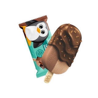 Двухслойный шоколадный пломбир с фундуком в молочном шоколаде.