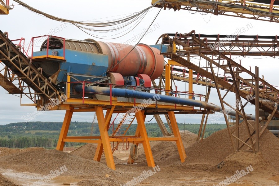 Мойка для щебня это машина предназначенная для механического разрушения промывки и классификации щебня по классам и отделения песка. Процесс промывки происходит внутри барабана при его вращении, во время которого весь материал поднимаются с помощью дезинтеграторов и составляющей центробежной силы на определенную высоту и падают вниз под действием силы тяжести. В результате неоднократных подъемов и падений а также при воздействии дезинтеграторов материал раскалывается на более мелкие куски и отмывается от глины и других примесей, проходит сквозь перфорированные сита, аккумулируясь в продукт требуемой крупности.