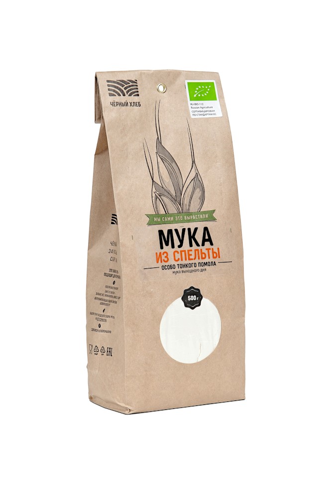 Спельта для этой муки была выращена на органической ферме «Чёрный хлеб» в соответствии со строгими экологическими стандартами — без минеральных удобрений, ГМО, стимуляторов роста и химических агентов.