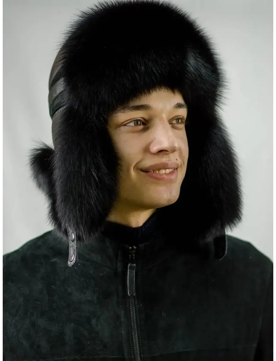 Мужской головной убор "Ушанка" - это стильная шапка ушанка мужская с натуральным мехом, зимняя, теплая и мягкая, не колется, подходит на осень и зиму (до -25 - 30 градусов). Шапочка хорошо сидит и держит форму. Изготовлена из натуральной замши и кожи, натурального меха песца. На ушах есть клепки, которые, при желании, можно застегнуть. Размер головного убора 57-58 / 59-60 см. Подкладка выполнена из саржи с синтепоном.