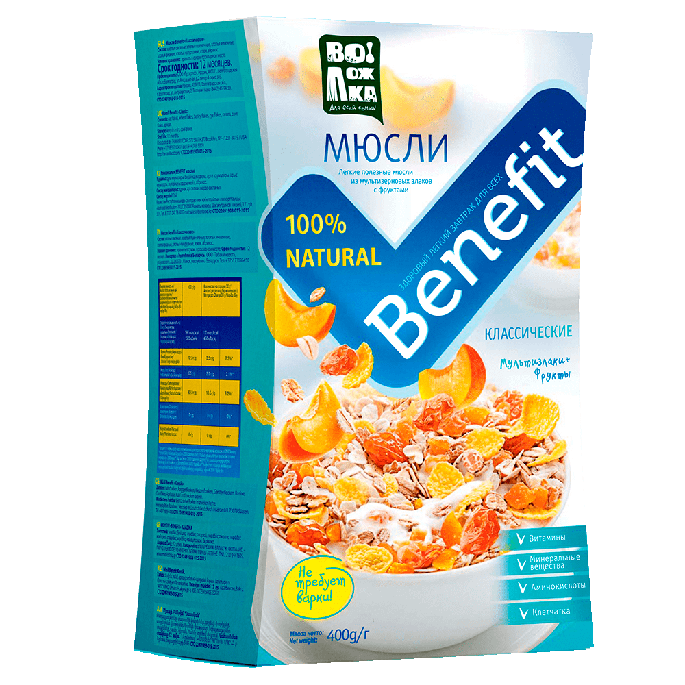 Мюсли – уникальный продукт, содержащий витамины, аминокислоты, белки и минеральные вещества. Тем, кто стремится сбросить пару килограммов, полезно употреблять мюсли: пищевые волокна, попав в желудок, перевариваются медленно, отчего чувство голода не приходит часами.