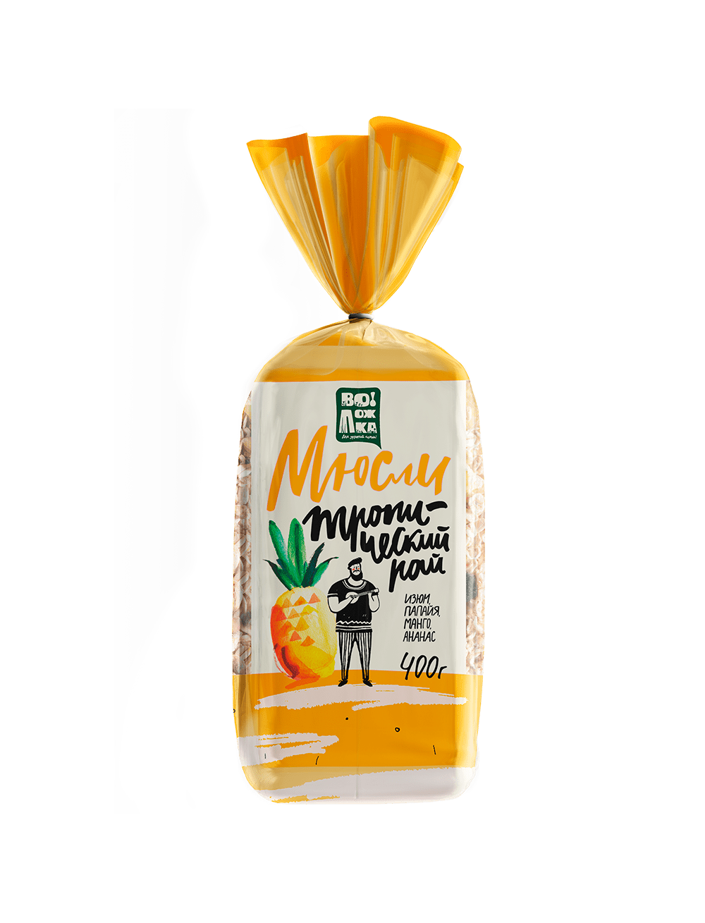 Хлопья овсяные, хлопья пшеничные, хлопья ячменные, хлопья ржаные, хлопья кукурузные (глазированные сахаром), изюм, папайя, манго, ананас