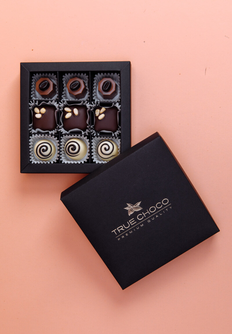 Набор из девяти конфет премиального качества из бельгийского шоколада.