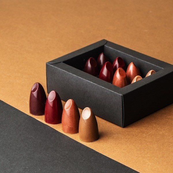 В нашем новом красивом наборе конфет в виде губных помад собрано 4 разных вида карамельных начинок: карамель с белым бельгийским шоколадом и солью, лимонная карамель с мадагаскарской ванилью, малиновая карамель и грейпфрутовая карамель в сочетании с грейфрутовым желе.