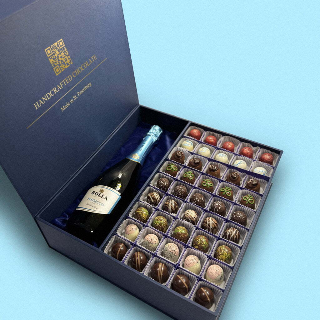 Набор на 45 конфет с отсеком под шампанское «Коллекция роскоши»