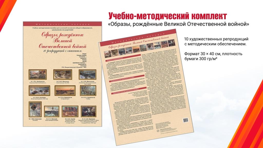 Набор постеров "Образы, рожденные Великой Отечественной войной" - это уникальный продукт, созданный для увлекательного обучения и развития детей. Этот набор из 10 репродукций в папке, предназначен для использования в рамках детского творчества и развития, предлагая не только элементарные знания, но и глубокое понимание исторического контекста.
