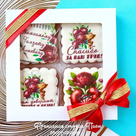 Набор тематических имбирных пряников в благодарность Врачу, доктору на День Медика. В таком же стиле есть большой выбор других иллюстраций, подберем варианты под нужную специализацию и Ваш запрос, просто напишите нам Ватсапп, мы пришлем варианты других иллюстраций.
