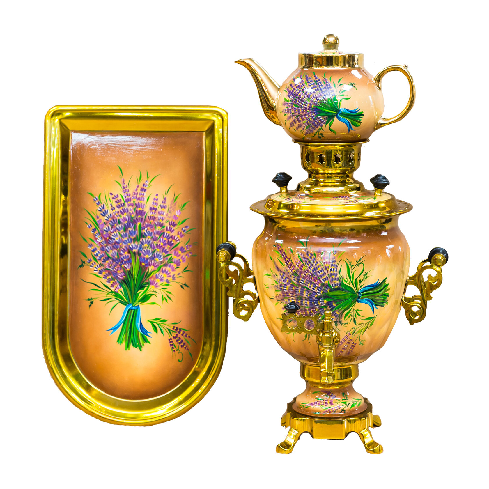 Набор самовара электрического 3 литра с росписью «Лаванда»
