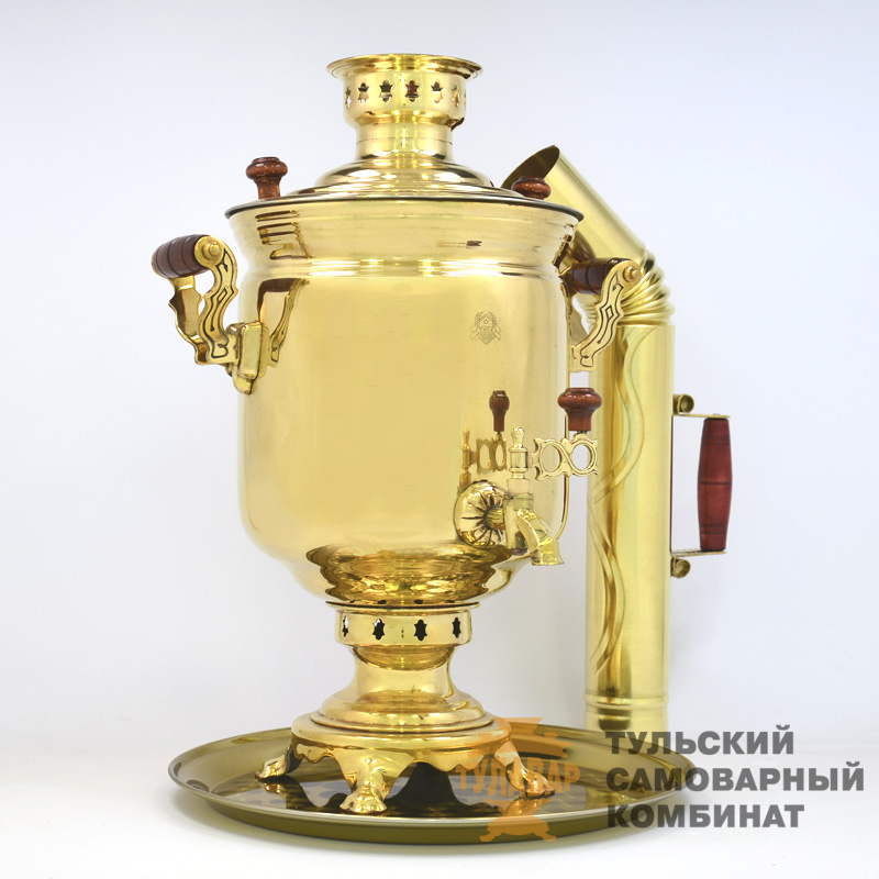 Выбрать достойный подарок для ценителя чайной церемонии стало теперь так просто. Ведь мы подготовили для вас традиционный самоварный набор. Теперь вы можете купить не только самовар, но и в комплекте к нему поднос и трубу, что поможет провести чайную церемонию в соответствии со всеми традициями. Все элементы комплекта выполнены в классическом стиле с полированной поверхностью, которая долго сохраняет свой блеск. Посуда пригодна для частого использования. Латунь покрытая пищевым оловом не меняет вкус и аромат напитка. Такой подарок будет востребован и оценен. Корпус прекрасно сохраняет тепло, деревянные ручки защитят от ожогов при транспортировки растопленного самовара или его использовании. Чтобы растопить самовар чаще всего используют обычные щепки или древесный уголь, но некоторые топят еловыми шишками. В любом случае чай получится вкусным и ароматным. Выгодные условия заказа. Мы продаем самовары от производителя, что является гарантией честных цен и высокого качества. На всю продукцию предоставляется гарантия. ТСК ТУЛАВАР дарит вам бесплатную и надежную доставку по России. Продукция упаковывается в подарочную коробку. При покупке дровяного самовара на 7 литров, как и на другие самовары на дровах, распространяется гарантия 5 лет. Попробуйте наш сервис – оцените качество самовара!