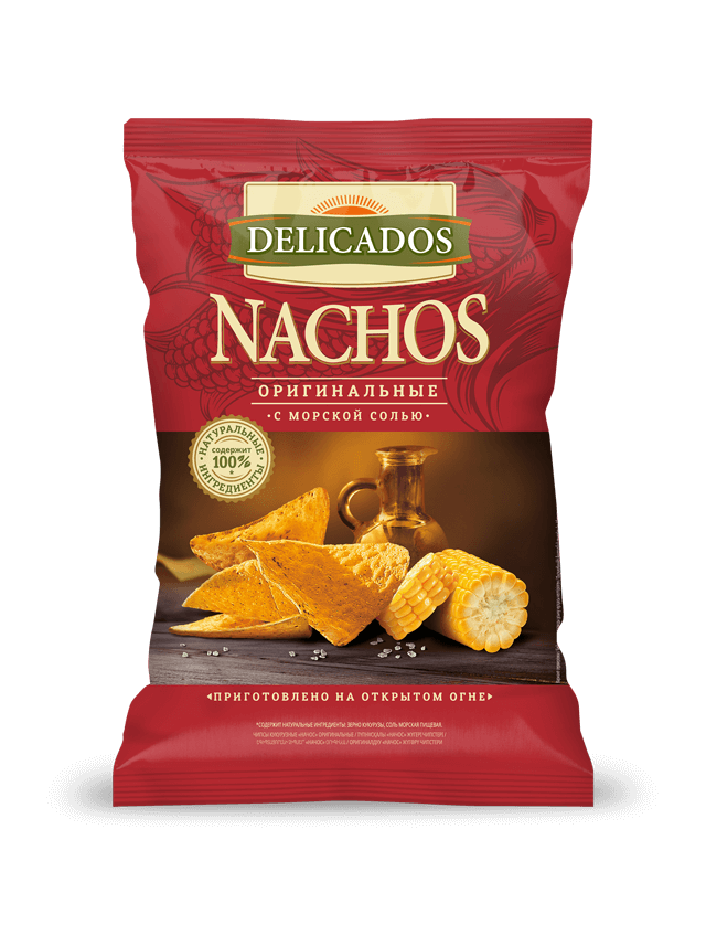 Начос Delicados Оригинальные кукурузные отличаются хрустящей текстурой и насыщенным пикантным вкусом. Продукт быстро насыщает и заряжает энергией, тонизирует и восстанавливает силы. Это классические начос с добавлением морской соли традиционной треугольной формы. Они изготовлены исключительно из цельного зерна кукурузы, сваренного по особой технологии.