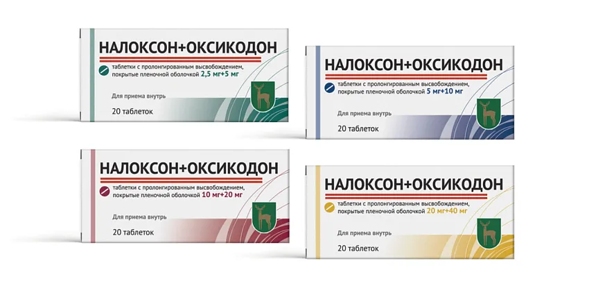 Налоксон + Оксикодон - это комбинированный лекарственный препарат, содержащий сильный опиоидный анальгетик (оксикодон) и антагонист опиоидных рецепторов (налоксон). Применяется для лечения тяжелых хронических болей, требующих наркотических обезболивающих, при этом налоксон снижает риск опиоид-индуцированных запоров. Форма выпуска: таблетки с пролонгированным высвобождением, покрытые пленочной оболочкой, 2,5 мг + 5 мг № 20, 5 мг + 10 мг № 20, 10 мг + 20 мг № 20, 20 мг + 40 мг № 20.
