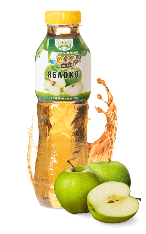 вода питьевая, сахарный сироп, сок яблочный, регулятор кислотности лимонная кислота, ароматизатор пищевой «Яблоко», подсластитель «Мультисвит 200F», краситель сахарный колер Е 150d, консерванты (сорбат калия, бензоат натрия)