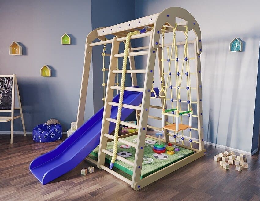 Напольный спортивный комплекс Модель № 4 - это детский спортивный комплекс для дома, который приведет в восторг любого малыша. Катаясь на горке ребенок получит массу позитива и хорошего настроения. Горка имеет прочную конструкцию, поэтому она выдержит максимальные нагрузки. Горка выполнена из экологически чистого и гипоаллергенного пластика, что обеспечивает дополнительную безопасность. В составе конструкции есть сетка для лазания, шведская стенка наклонная, рукоход. Спортивный комплекс устанавливается на пол. Представляет собой сборно-разборную конструкцию из массива дерева. Длина, ширина, комплекса - 1,17*1,28 м. Высота комплекса - 1м. 70 см.