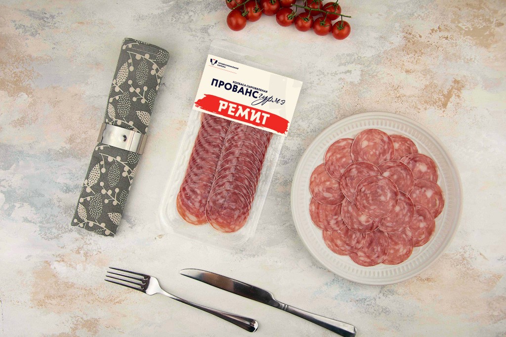 Состав: свинина, соль нитритная (соль, фиксатор окраски нитрит натрия), сахар, декстроза, лактоза, глюкозный сироп, пряности (мацис, перец черный, мускатный орех), усилитель вкуса и аромата: глутамат натрия; антиокислители (изоаскорбат, аскорбат натрия), ароматизатор (вяленое мясо), экстракт перца черного, краситель: кармин; стартовые культуры. ПОВЕРХНОСТЬ ПРОДУКТА ПОКРЫТА СЪЕДОБНОЙ ТАУХМАССОЙ, ИМИТИРУЮЩЕЙ БЛАГОРОДНУЮ ПЛЕСЕНЬ Состав: вода, краситель: диоксид титана; пищевой желатин, загустители (модифицированный крахмал, ксантановая камедь), регулятор кислотности: ацетат натрия; консервант: сорбат калия; рисовый крахмал, ароматизатор. На предприятии также используются горчица, молоко, орехи, пшеница, сельдерей, соя и яйца. Пищевая ценность в 100г продукта (средние значения): белки 23 г, жиры 33 г, энергетическая ценность (калорийность): 390 ккал/1610 кДж. Срок годности: 90 сут.