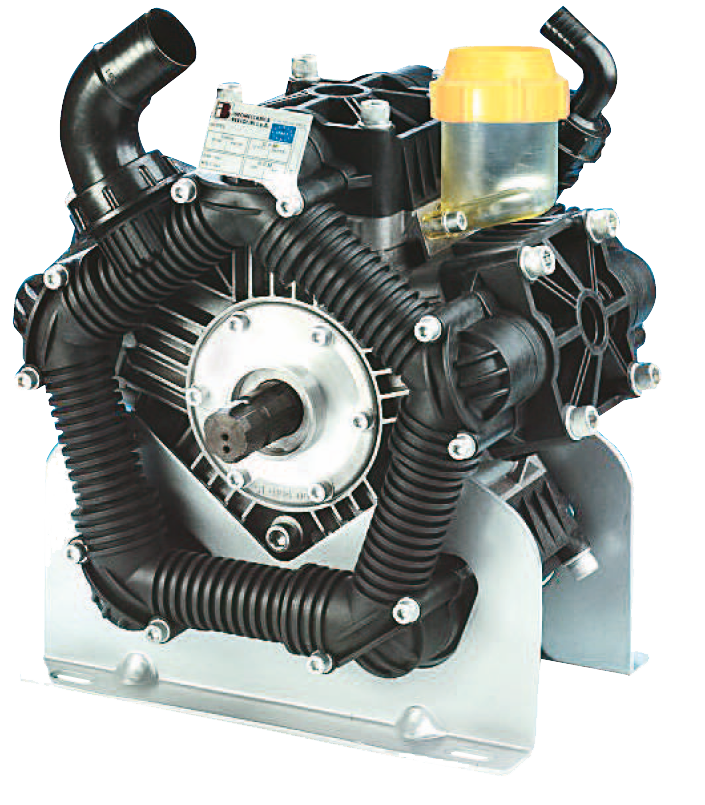 Полипропиленовые мембранно-поршневые насосы POLY для работы с агрессивными средствами защиты растений, средствами уничтожения сорняков с отрицательным pH, жидкими удобрениями, способными разъедать сталь. Агрегат защищен от действия «сухого хода». Усиленные клапаны и прочный корпус обеспечивают агрегату высокий конструктивный ресурс. Насос оборудован масляным стаканом, воздушной камерой, маслосборными кольцами. Устойчив к воздействию агрессивных химических растворов. Имеет пластиковое покрытие.