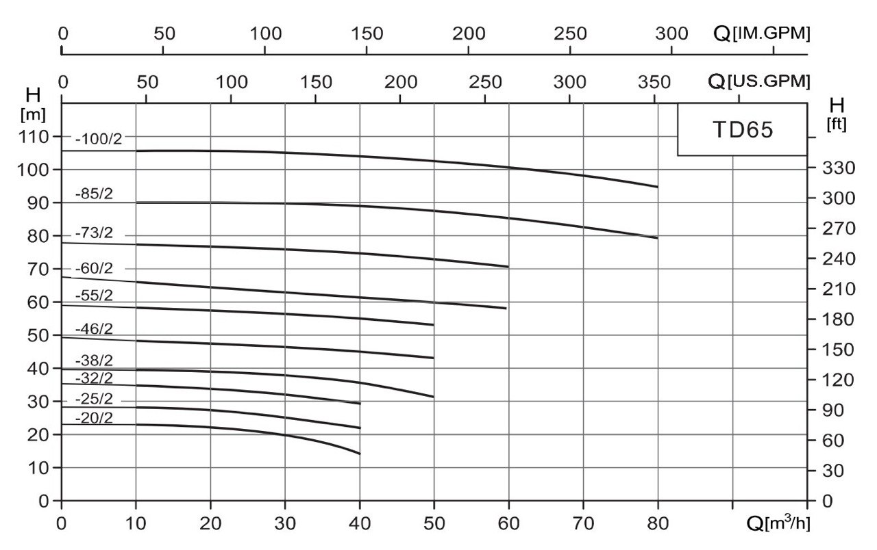 Насос циркуляционный CNP серии TD65-34G/2 одноступенчатый, центробежный, рядный, с соосным размещением патрубков («ин-лайн»), оборудованный стандартным двигателем и рабочим колесом из чугуна.