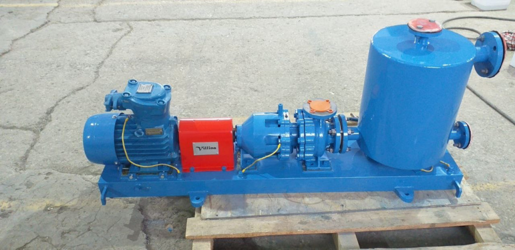 Насосы центробежные самовсасывающие с магнитной муфтой типа ГНГЦ-С, ГНГЦ-С-М, НЦГ-С - это центробежные самовсасывающие насосы с магнитной муфтой, предназначенные для перекачивания агрессивных, токсичных, взрывопожароопасных или летучих жидкостей там, где требуется высокая герметичность и безопасность. Они используются для создания вакуума на всасе и обеспечения подачи жидкости при недостаточном давлении, а магнитная муфта исключает утечки, что делает их идеальными для работы с вредными или ценными средами. Диапазоны подач - 1,8-450 м3/ч. Напор - до 132 м. Высота самовсасывания (глубина) - до 6 метров. Тип уплотнения - магнитная муфта по API685 или двойное торцевое уплотнение по API682. Климатическое исполнение - У и УХЛ. Температура перекачиваемой среды: ГНГЦ-С, ГНГЦ-С-М до плюс 350°С, НЦГ-С до плюс 450°С. Частота вращения вала - 1450 или 2900 об/мин. Конструктивное исполнение - консольное ОН-2 по API 610 или в виде моноблока. Главным преимуществом данного насоса является возможность забора жидкости с более низкой отметки, чем ось всасывающего патрубка без предустановленного вакуумнасоса.