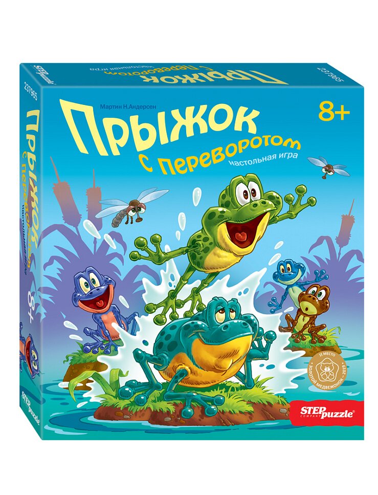 Настольная игра "Прыжок с переворотом" - это весёлая настольная игра с простыми правилами и бесчисленными вариантами возможных ходов. Развивает логику и стратегическое мышление. В наборе: игровое поле, деревянные двухцветные фишки - 15 шт., пластиковые маркеры выполненных заданий - 24 шт., правила игры. Возраст участников - от 8 лет. Количество игроков - от 2 до 4 человек. Среднее время игры - 10-15 минут. Материалы - картон, древесина, пластмасса, бумага.
