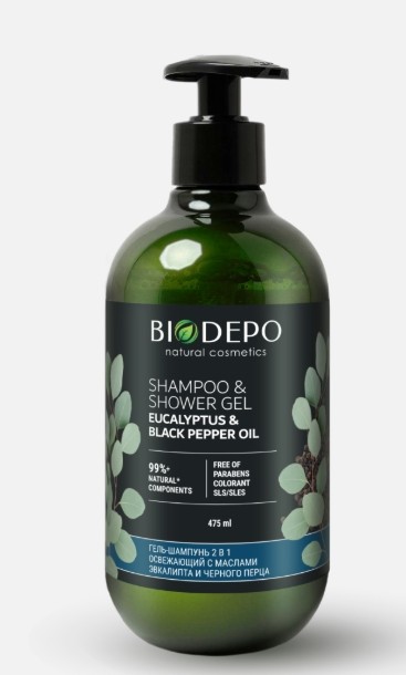 Натуральный шампунь-гель для душа с маслами эвкалипта и черного перца
