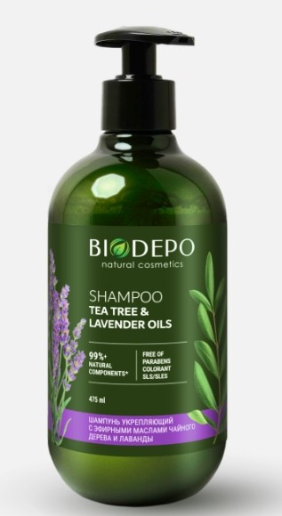Натуральный укрепляющий шампунь для волос с эфирными маслами чайного дерева и лаванды