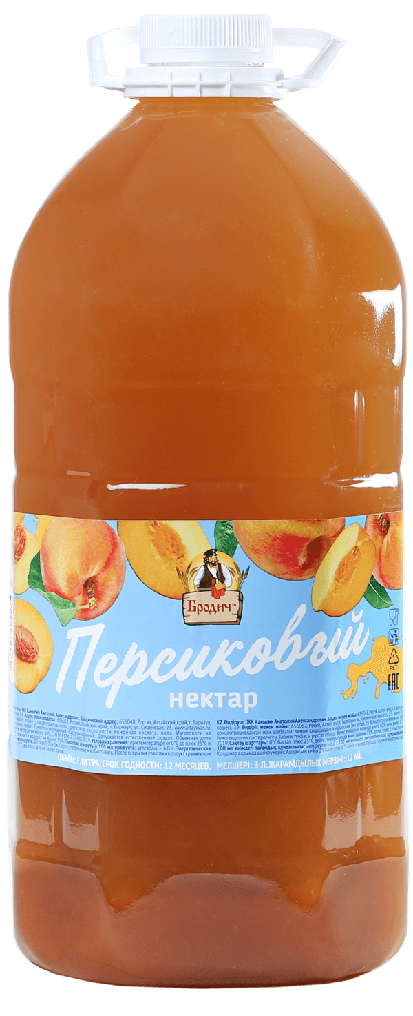 Персиковый нектар с мякотью. Гомогенизированный. Пастеризованный. Без консервантов. Минимальная объемная доля фруктового пюре в нектаре не менее 40%.