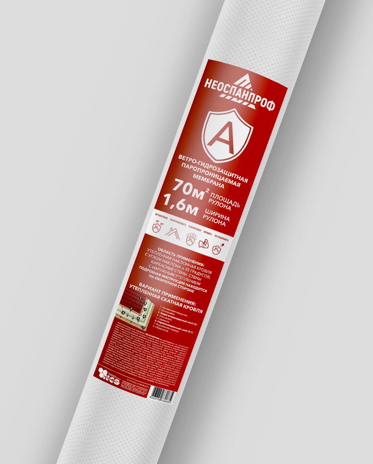 Стоит отметить, что НЕОСПАНПРОФ А 70 (рулон 70 м²) не предназначен для применения в качестве временного кровельного покрытия.