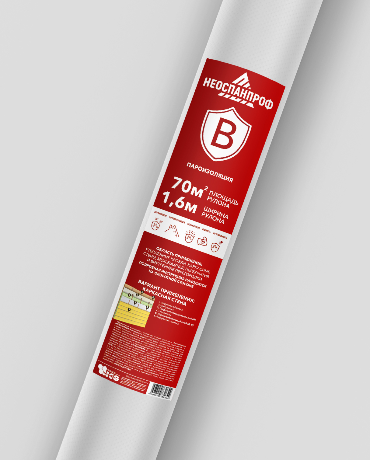 Разработан для комплексной защиты теплоизоляции и перекрытий от влаги, проникающей из помещений в виде пара. Защищает от образования конденсата, а в следствии появления грибка.