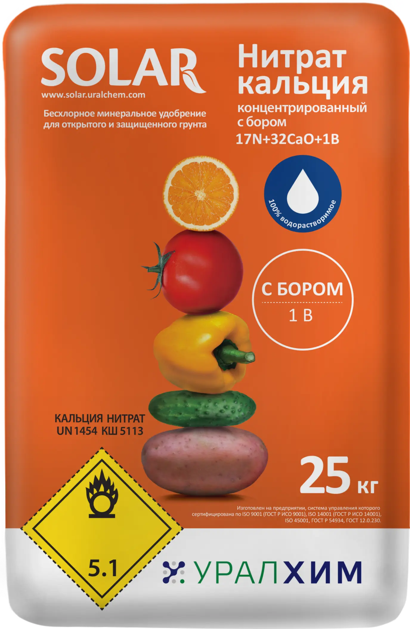Единственный концентрированный источник водорастворимого кальция теперь с бором.Высокая концентрация кальция увеличивает лёгкость и повышает качество получаемой продукции.Транспортировка/Упаковка:Железнодорожным и автомобильным транспортом в ПП мешках с ПЭ вкладышем, 25 кг, на паллетах.