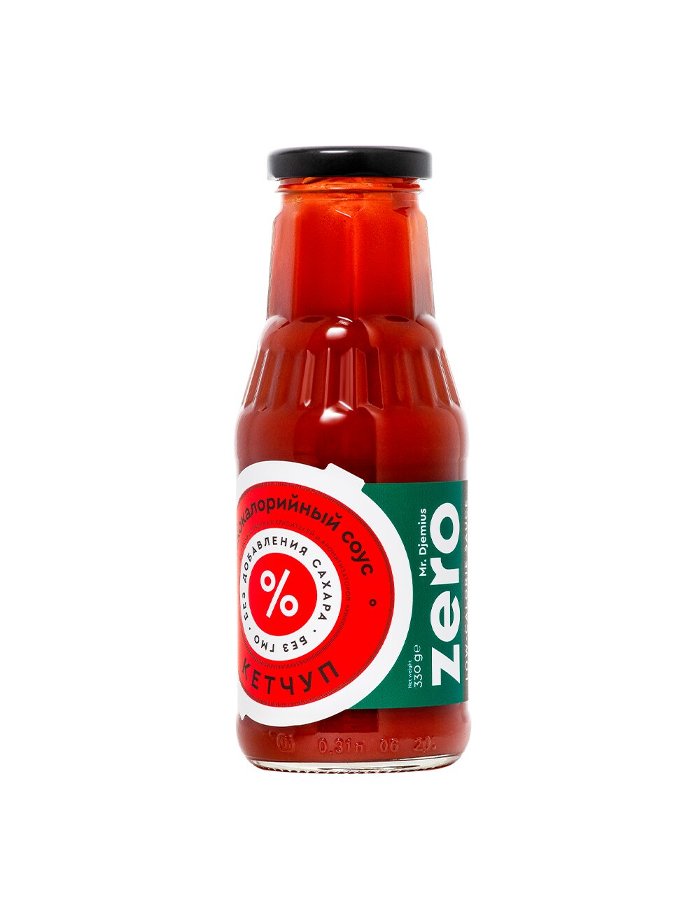 Чтобы вы контролировали количество калорий в блюде, не исключая соус, мы используем тару с широким горлышком. Так вы можете доставать соус из банки прямо ложкой. Одной баночки добавки Mr. Djemius ZERO — 330 миллилитров — в среднем хватает на 30-40 блюд.