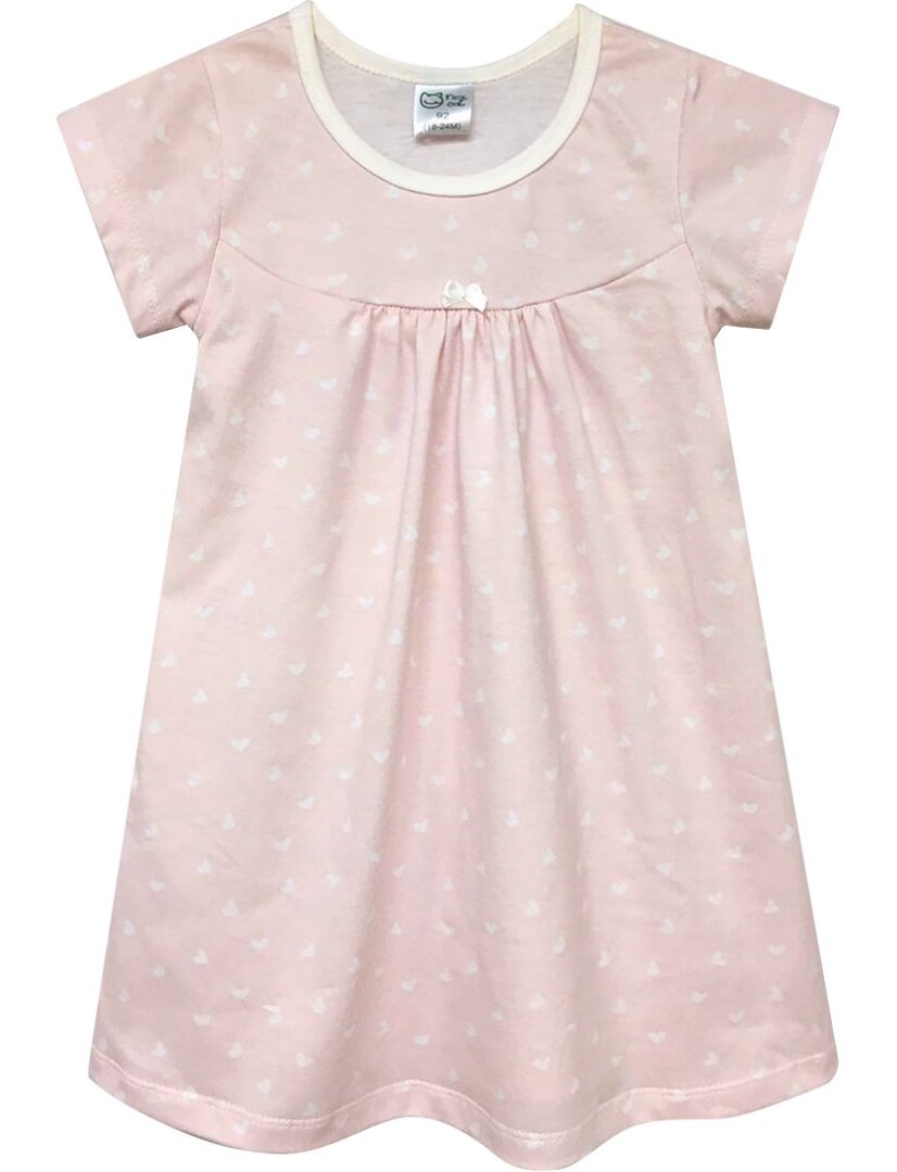 Ночная сорочка для девочки - это легкая, мягкая и дышащая одежда для сна, сшитая из тонкого хлопкового трикотажа (кулирки). Она предназначена для комфортного сна, так как гипоаллергенна, хорошо впитывает влагу, пропускает воздух и приятна к телу, что особенно важно для чувствительной детской кожи. Покрой сввободный, на кокетке. Короткий втачной рукав, без карманов. Сорочка имеет декоративный элемент - бантик. Возраст - 2-6 лет.