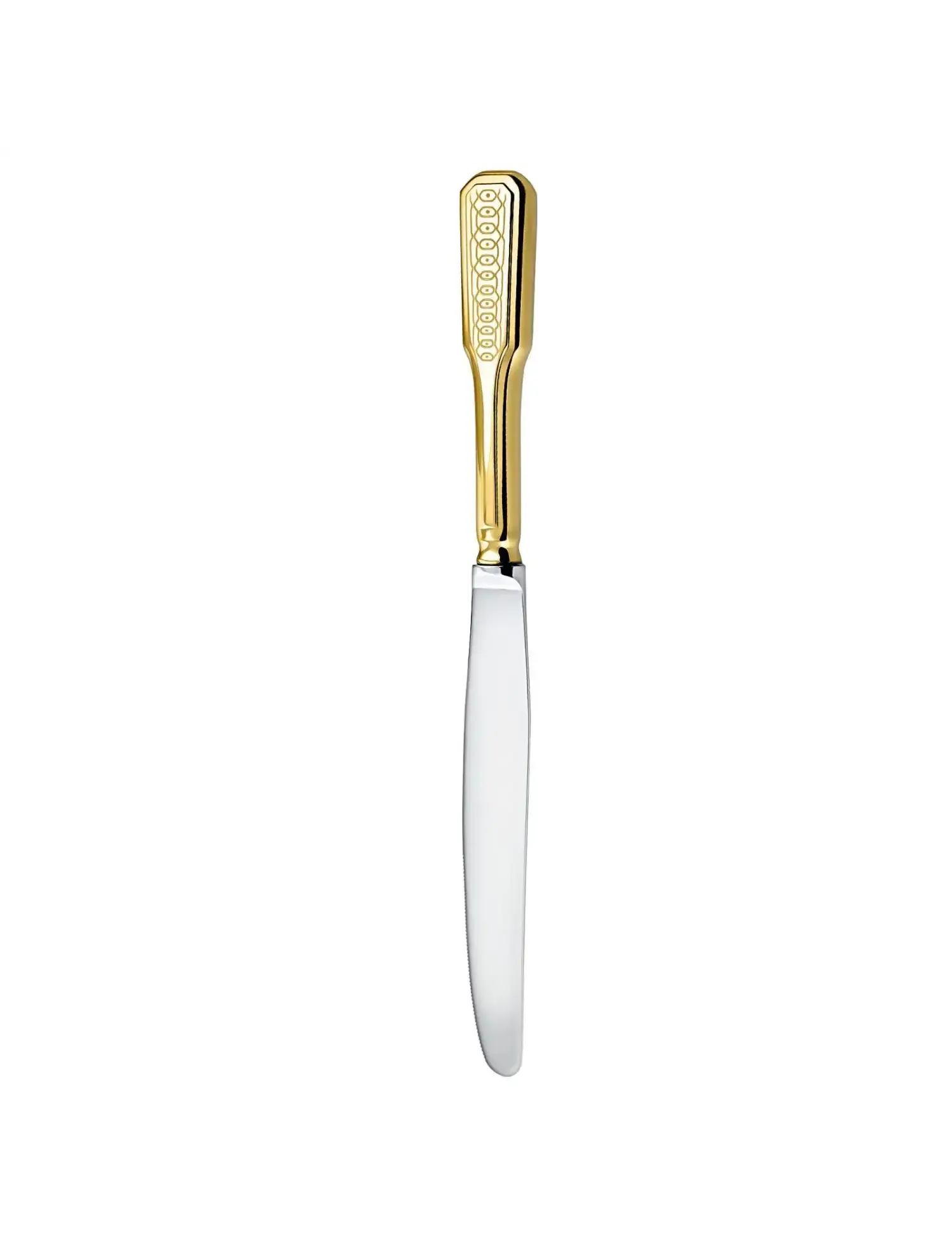 Нож столовый "Русский" - это премиальный предмет сервировки из стерлингового серебра, покрытый слоем золота для эстетики и защиты. Используется для элитной сервировки стола, подчеркивает статус владельца, подходит в качестве подарка, сочетая традиционный дизайн с антисептическими свойствами серебра. Позолота (гальваническое покрытие) делает изделие внешне похожим на золотое, защищает серебро от быстрого потемнения и придает благородный блеск. Средний вес - 38 гр. Размер: 245*23*10 мм.