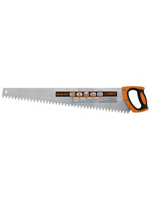 Ножовка по газобетону "Премиум 650 К" - это специализированный ручной инструмент с полотном длиной 650 мм, оснащенный твердосплавными (победитовыми) напайками на зубьях. Она предназначена для быстрого и точного распила блоков из ячеистого бетона (газобетона, пенобетона) при строительстве стен. Трапециевидное полотно увеличенной длины. Толщина полотна 1,3мм. Сверхстойкое полимерное покрытие полотна. Высокоуглеродистая закаленная инструментальная сталь. Эргономичная двухкомпонентная ручка. Все это обеспечивает сверхнадежность и комфорт при работе.