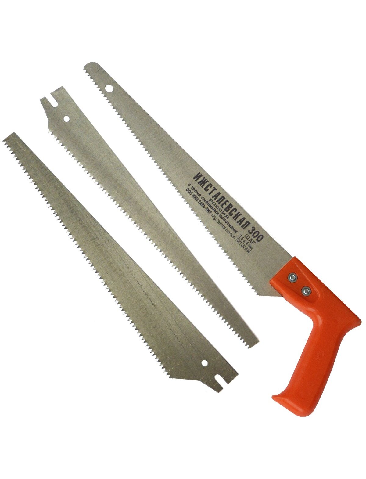 Ножовка универсальная с тремя сменными полотнами - это многофункциональный ручной инструмент, объединяющий возможности пилы по металлу, дереву и пластику в одном корпусе. Она позволяет быстро менять рабочие лезвия для различных задач, обеспечивая резку труб, прутьев, досок или фигурных элементов благодаря специальному поворотному механизму. Изготавливается из высококачественной пружинной стали. Полотно обладает высокой твердостью и качеством поверхности.