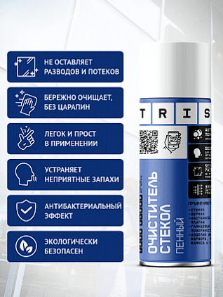 является чистящим средством для стекол и зеркал от сложных загрязнений и пыли в аэрозольной упаковке с антибактериальным эффектом.