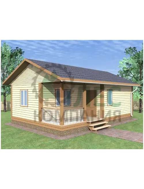 Одноэтажный дом из бруса размером 6×9 м с террасой — это загородный дом, который может быть построен из профилированного бруса. Такие проекты подходят для постоянного проживания или в качестве загородной дачи для небольшой семьи.
