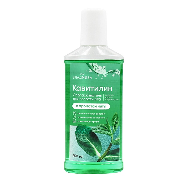 Ополаскиватель для рта "Кавитилин" с ароматом мяты предназначен для ежедневного гигиенического ухода за полостью рта и профилактики развития воспалительных процессов. Ополаскиватель обладает выраженным антимикробным действием и способствует регенерации слизистой полости рта. Ополаскиватель "Кавитилин" эффективен для профилактики инфекционно-воспалительных процессов; препятствует появлению неприятного запаха и размножению патогенных бактерий в полости рта и на ортодонтических конструкциях (брекетах); ингибирует рост и размножение кариесогенных бактерий, способствует укреплению зубной эмали, снижает образование зубного налета. Форма выпуска - жидкость 250 мл.