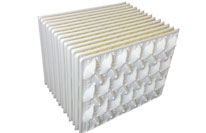 Ороситель КОНУС-ТУРБО - это плёночный ороситель для градирен, предназначенный для повышения эффективности охлаждения воды за счет создания большой площади контакта с воздухом при низком аэродинамическом сопротивлении. Он используется в системах охлаждения на промышленных предприятиях (ТЭЦ, химические заводы и др.) для снижения температуры теплоносителя, что увеличивает выработку энергии и эффективность производства. Блок-ороситель представляет собой пакет из шероховатых листов ПВХ двойного гофрирования, соединенных между собой спайкой, что обеспечивает высокую прочность блока. Двойное гофрирование листа многократно увеливает эффективную площадь оросительной насадки, участвующей в тепломассеобмене. Каждый элемент блока оросителя - плоский лист высотой 0,5м имеет 6 рядов наклонных конусообразных турбулизаторов, выполненных под углом 60 градусов к горизонту. Такая структура значительно снижает коэффициент аэродинамического сопротивления, а за счет дополнительной турбулизации взаимодействующих потоков резко повышается охлаждающая способность. Оросители предназначены для работы в системах со средней и высокой плотностью орошения. Наличие антипирена исключает самовоспламенение и поддержание горючести.