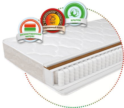 Идеальный вариант для тех, кто пока не определился какую жесткость матраса выбрать. Разносторонний матрас дает возможность получить два разных эффекта в одном матрасе. Одна сторона с холконом, средней жесткости. Другая сторона жесткая, благодаря добавлению кокосовой койры. Хлопковый чехол, делает Ваш сон максимально комфортным.