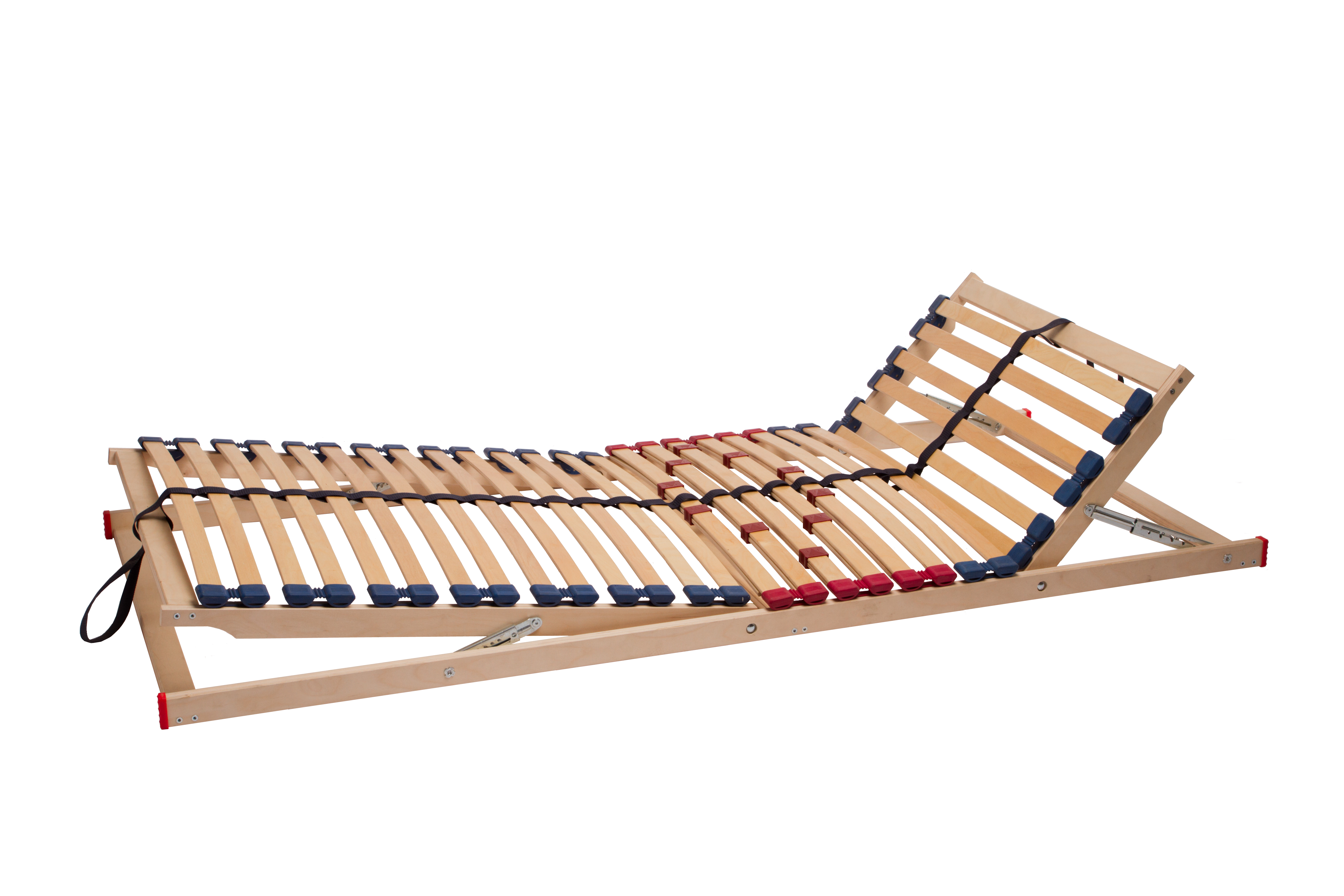 Односпальное гибкое кроватное основание с регулируемой высотой подъема пояснично-головной и ножной части. Устанавливается в кровать не менее чем на 3 точки опоры по длине продольных брусков. Каркас основания изготовлен из плоскоклееных березовых брусков сечением 50х21мм. Бруски связаны между собой при помощи винтов-конфирматов 7х50мм. В изделии применяются латофлексы шириной 37мм, установленные на латодержатели ЛДТ 2.38-3 с тремя степенями свободы. Для связки латофлексов используется лента шириной 30 мм. Это позволяет снизить нагрузку на отдельные латофлексы. Изделие комплектуется курсорами и дополнительными латофлексами для индивидуальной регулировки жесткости прогибы спального места. Предназначено для эксплуатации с латексными или аналогичными по свойствам матрасами толщиной до 150мм. Сечение внешнего каркаса основания 60 х 24 мм Сечение внутреннего каркаса 50 х 21 мм Количество ламелей 28 шт + 5 шт дополнительных Сечение ламелей 37 х 8 мм Тип латодержателя Три степени свободы Опоры Нет