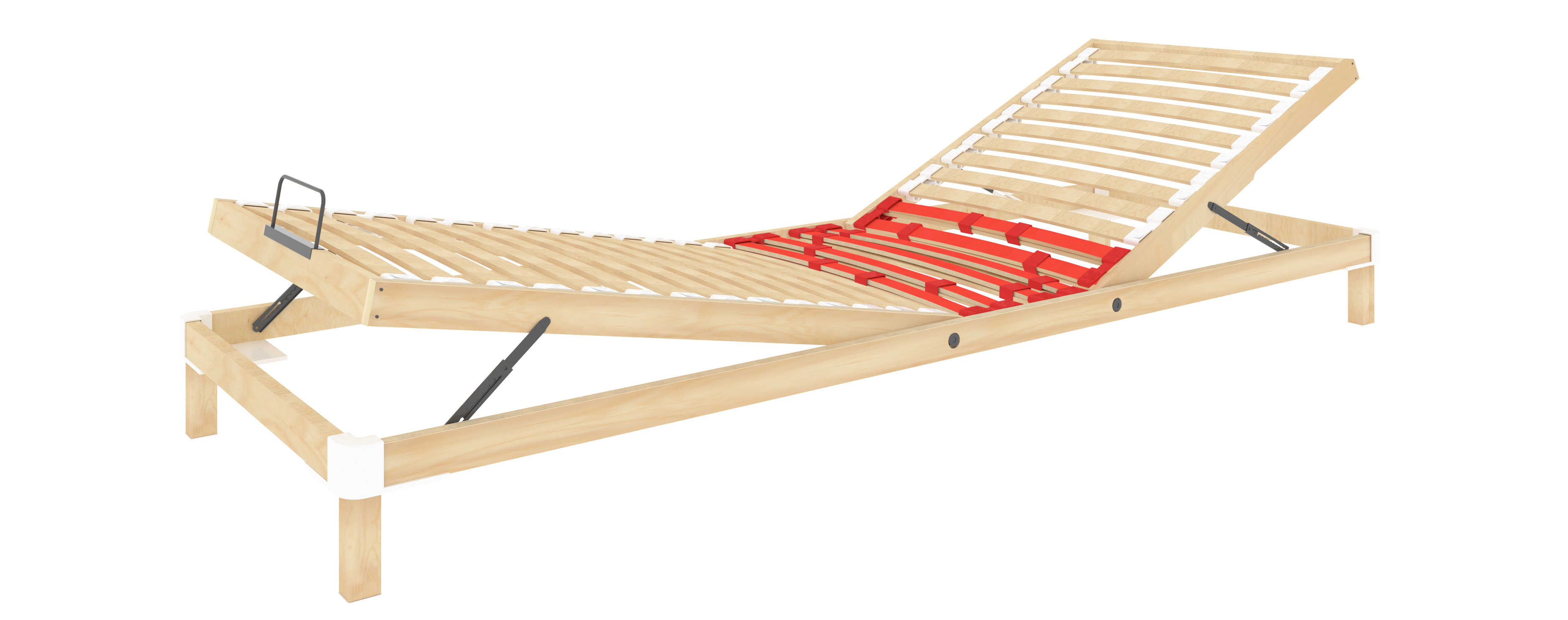 Односпальное гибкое основание кровати – тахта с регулируемой высотой подъема пояснично-головной и ножной частей (6 фиксированных положений для каждой части). Устанавливается в кровать или используется как самостоятельная конструкция для организации спального места. Каркас основания изготовлен из плоскоклееных березовых брусков, связанных между собой угловыми узлами УУП 05.60.24 с наружными радиусами закруглений 56 мм. Бруски подъемной части связаны между собой при помощи винтов-конфирматов 7x50 мм. В изделии применяются латофлексы шириной 38 мм, установленные на латодержатели ЛДТ 2.38-3 с тремя степенями свободы или аналогичные им. Изделие может комплектоваться курсорами и дополнительными латофлексами для индивидуальной регулировки жесткости прогиба спального места. Базовая высота гибкого кроватного основания (до верхней плоскости латодержателя) 245 мм. Необходимая высота согласовывается с заказчиком. Изделие по своим параметрам и прочностным характеристикам превосходит ортопедические решетки, изготовленные из цельносварной профильной металлической трубы. Предназначено для эксплуатации с латексными или аналогичными по свойствам матрасами толщиной до 120 мм. Сечение внешнего каркаса основания 60 х 24 мм Сечение внутреннего каркаса 50 х 21 мм Количество ламелей 26 шт Сечение ламелей 37 х 8 мм Тип латодержателя Три степени свободы Тип трансформации Механический Наличие регуляторов жесткости Есть, 12 шт Наличие матрасодержателя Есть, 1 шт Опоры Есть, 165 мм, 4 шт