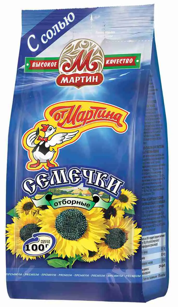 Семечки отборные обжаренные «От Мартина» Premium с сольювыпускаются в фасовке 100, 200, 300 и 500 г.