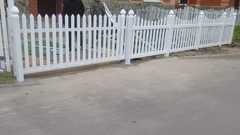 Автоматические ворота изготавливаются под размер проема въездной группы или по желанию заказчика. Каркас воротной створки сварной, выполняется из профильной трубы 30х60 мм. Окраска каркаса - в цвет забора или в цвет, выбранный заказчиком. Заполнение металлического каркаса производится ПВХ секциями, аналогичными установленному забору, в результате чего, ворота не выделяются из общей линии ограждения и имеют идентичный внешний вид. Для автоматизации ворот применяется электрический привод итальянского производства.