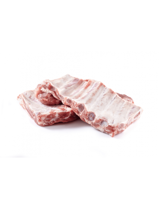 Отруб свиной грудно-реберный на кости (грудинка) — это часть туши, включающая ребра, грудные хрящи, мышечную ткань и прослойки жира, часто со шкурой. Полуфабрикат отличается насыщенным вкусом, идеально подходит для запекания, тушения, варки бульонов и копчения благодаря сочности и аромату.