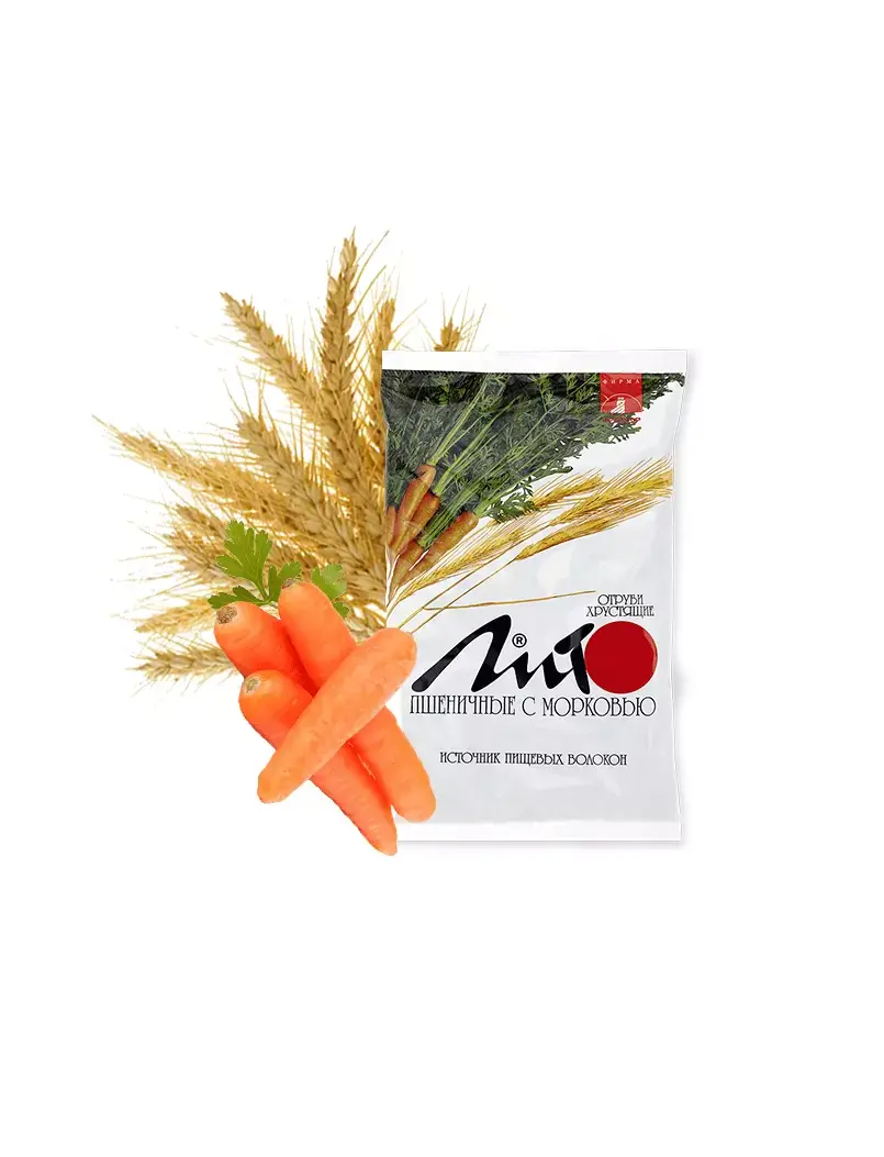 Отруби пшеничные хрустящие «ЛИТО» с кальцием и морковью —продукт для здорового питания, содержащий пищевые волокна злаков (клетчатку).
