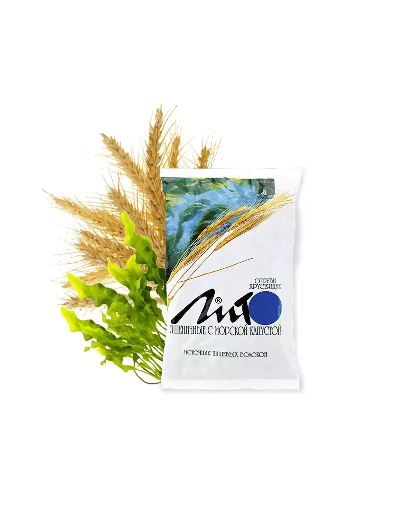 Отруби пшеничные хрустящие «ЛИТО» с кальцием и морской капустой —продукт для здорового питания, содержащий пищевые волокна злаков (клетчатку).