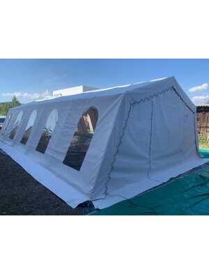 Палатка каркасная Скандия предназначена для долговременного пользования, предусматривает максимально быструю установку и предназначена для организации полевых медицинских пунктов, пунктов питания, столовых, штабов, а также проведения торжественных мероприятий на открытом воздухе в любое время года.Двухскатная палатка с наклонными боковыми стенками устанавливается на металлическом каркасе. На боковых стенах располагается по 5 больших окон-арок, на торцевых стенах – по одному входу.Вход у палаток запашной, застегивается на клеванты. Возможно закрытие входа, как с внешней стороны палатки, так и с внутренней.Конструкция тента позволяет при необходимости снимать торцевые стенки, закрепленные при помощи шнуровки, и закатывать боковые стенки, поднимая их наверх. При этом доступ в палатку максимально открыт, а крыша защищает от солнца и дождя.